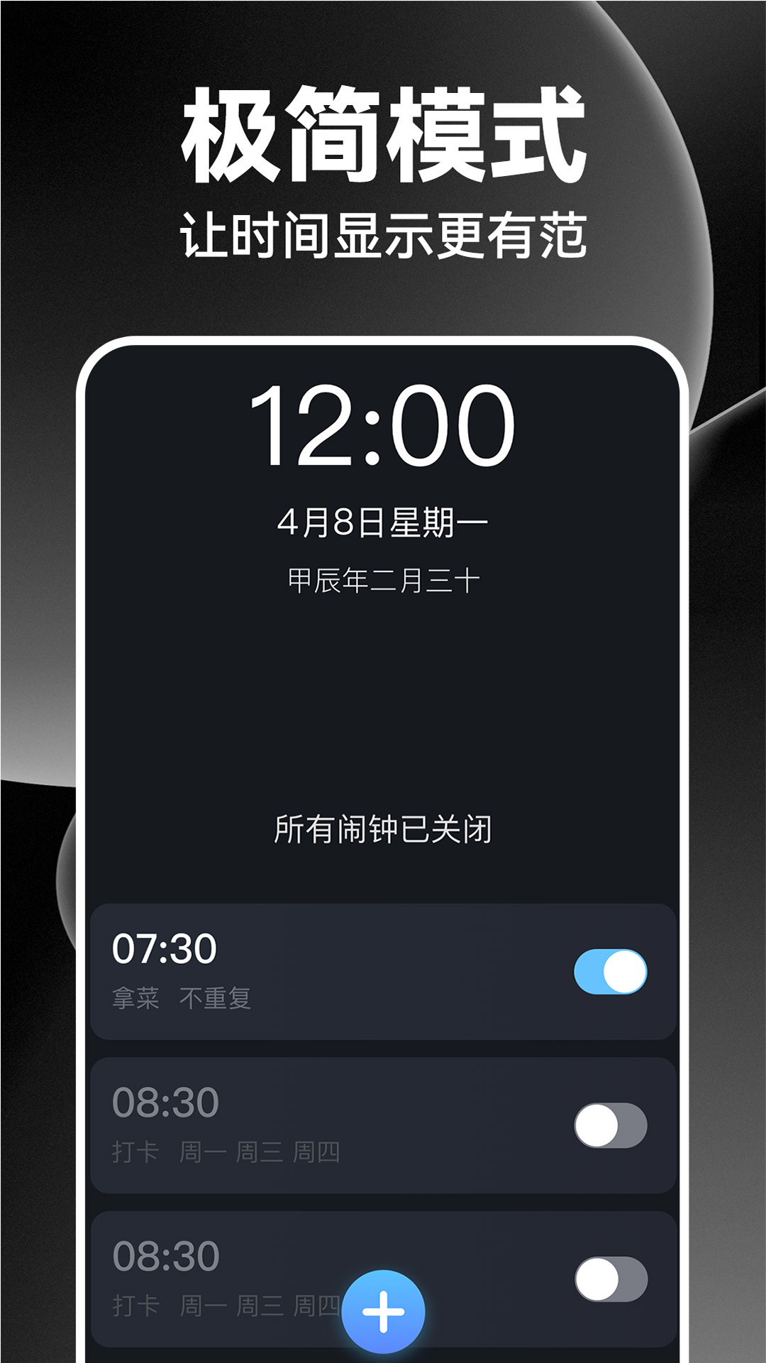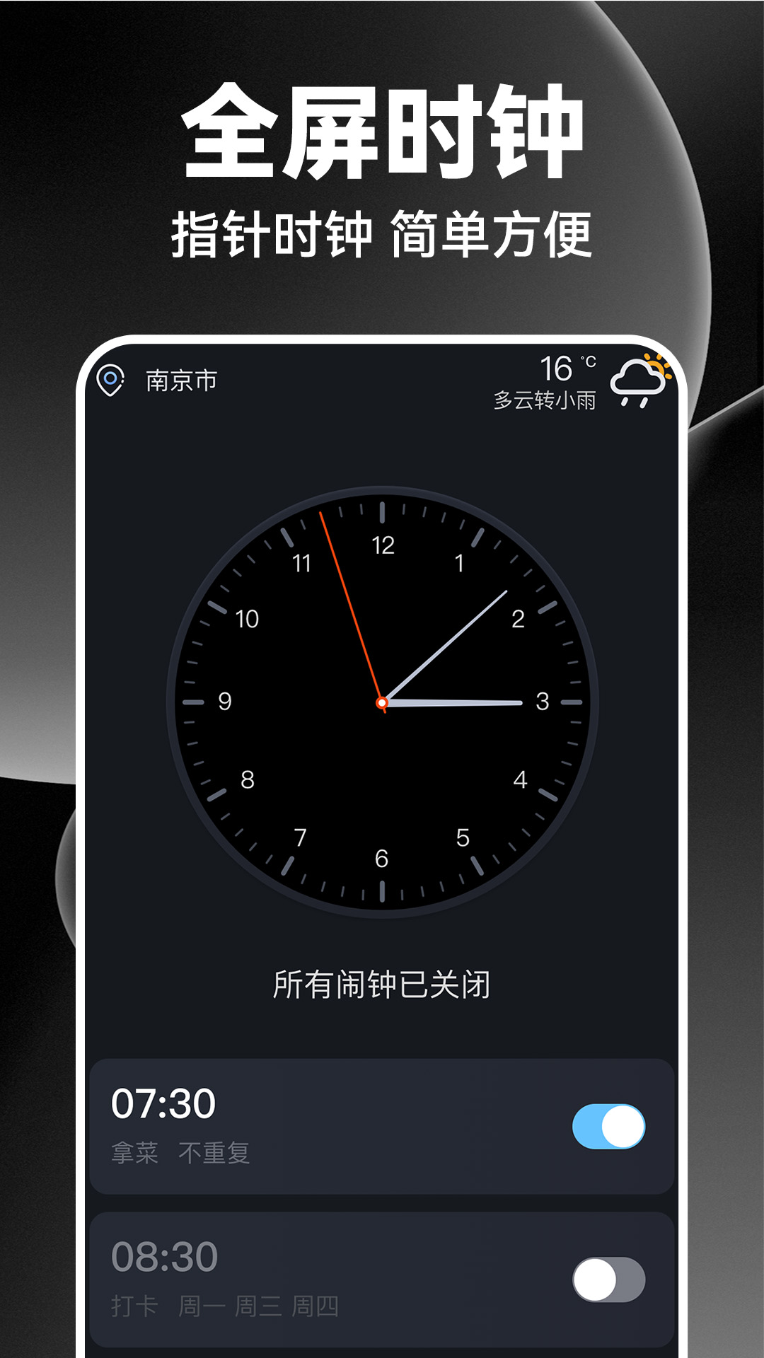 支持自定义闹铃音乐、振动模式和贪睡时长,可根据个人作息习惯灵活调整,满足不同用户的起床需求。