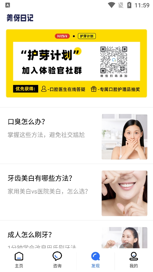 美伢日记手机版一款智慧的刷牙,软件可以一键随时对你的牙齿进行快速记录,而且软件中的各种全新口腔知识可以随时观看,为你快速的解决你的各种口腔问题,而且软件中还有非常多的全新资源可以切换,更好的满足你的手机在线健康咨询需要,而且美伢日记手机版软件所有的操作是非常的,更好的满足你的手机在线使用需要,软件中还有功能强大的管理功能,让你可以在软件中获得最好的优质操作,并且这款软件中还有专业的牙科专家为你快速的解答你各种口腔问题。
