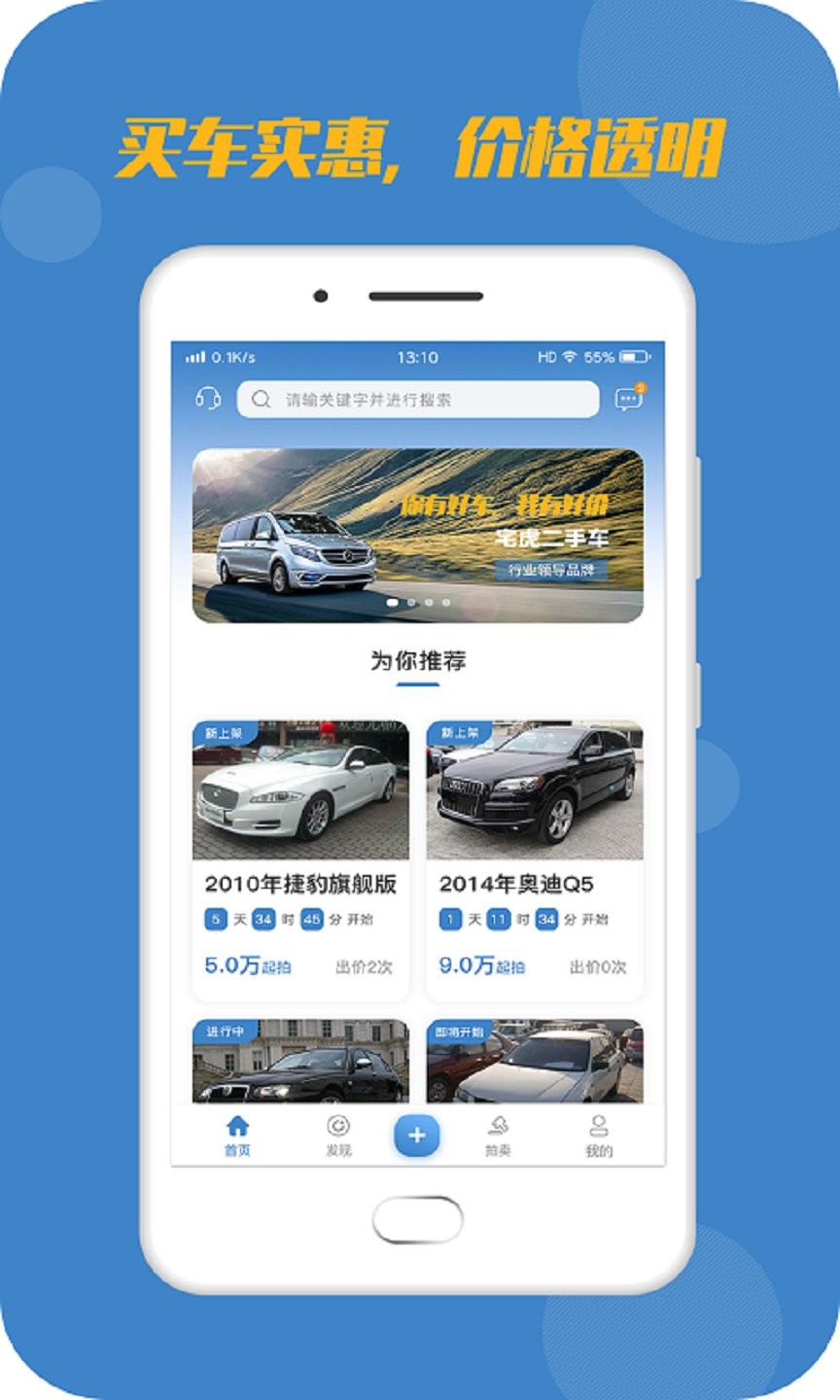 宅虎手机版是一款专注于二手车线上交易的平台,通过公开透明的拍卖机制,为用户提供公平诚信的交易环境。平台汇集海量经过专业认证的二手车资源,并配备一站式服务,让购车更便捷。