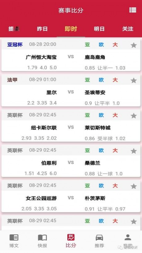 比分模块--比赛比分实时推送,比赛赔付数据汇总