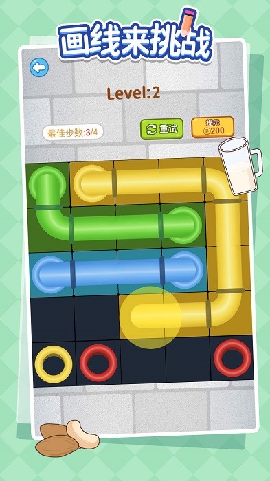 画线来挑战是一款充满创意与智慧的休闲闯关游戏,在这里你将体验到前所未有的脑力激荡。游戏以独特的画线解谜为核心玩法,需要玩家运用逻辑思维和空间想象力,通过绘制线条来解决各式各样的关卡难题。每一关都是对智力的全新考验,快来开启这场妙趣横生的冒险之旅吧!