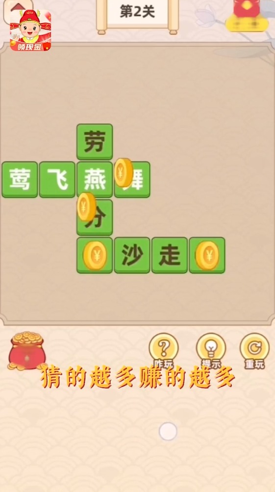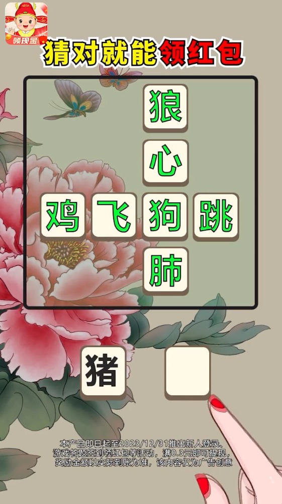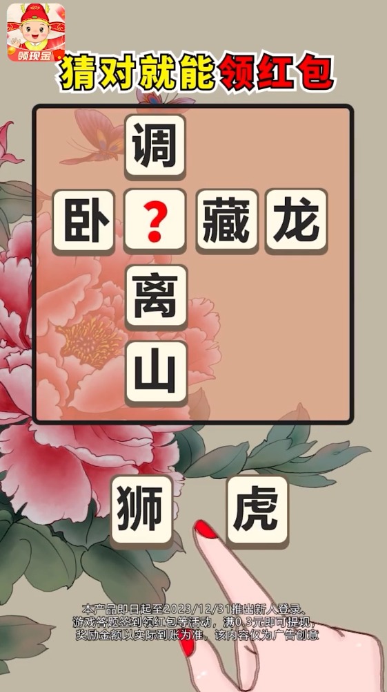 游戏包含看图猜成语、成语谜语、歇后语等多种玩法,上千道精心设计的题目等你来战。新用户注册即送5元红包福利,新春期间参与活动还能额外领取节日红包奖励。丰富多样的关卡设置让挑战充满乐趣。