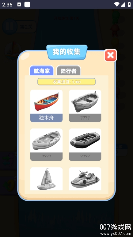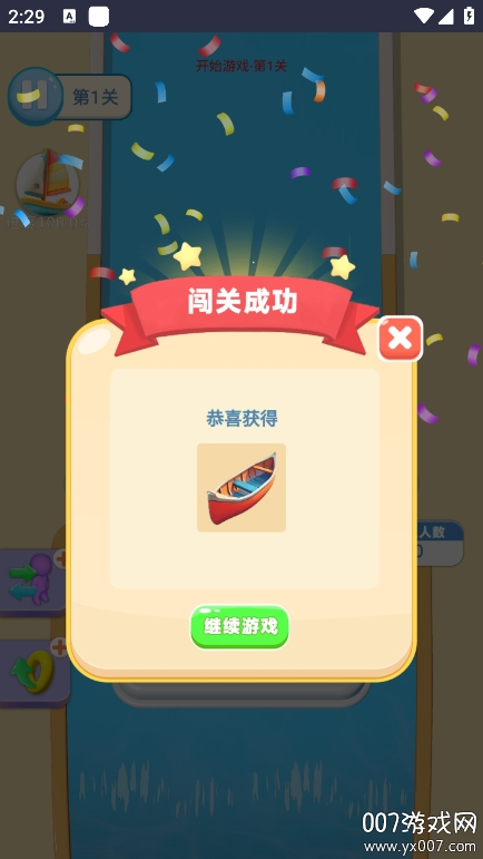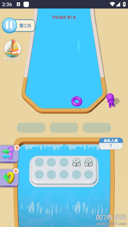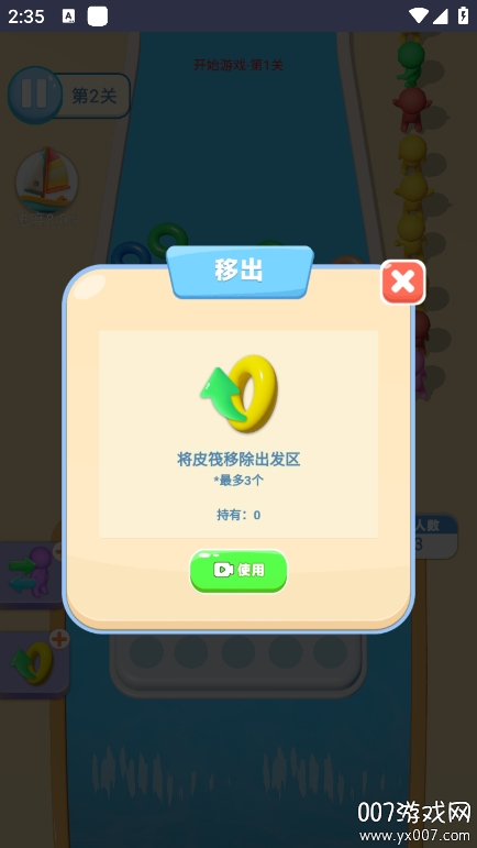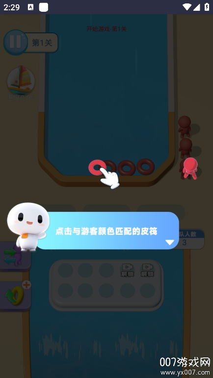 进入游戏关卡后,将相同颜色的皮筏与角色进行匹配