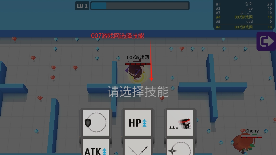 角色成长:玩家通过获取蓝色或击杀其他玩家来,最高可达到25级。每升一级,可以在三个可以加属性、随机技能中选一项升级,提升角色力。