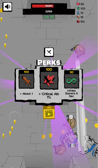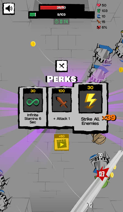 怪物会不断出现在游戏中,玩家需要保持连续的攻击。通过高速冲刺和击败怪物,玩家可以快速积累硬币和高分来挑战更高级别的地下城!