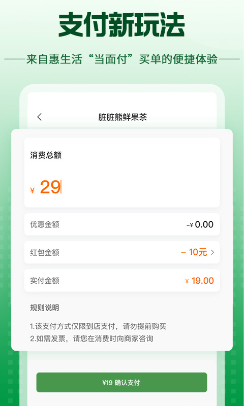 线上支付立享优惠,线下"当面付"体验轻松便捷!