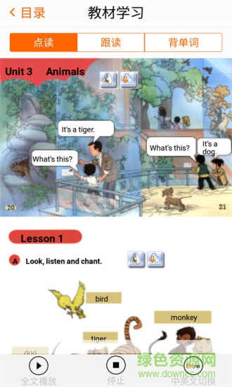 跟读句子:听原音,你来模仿,然后对比播放原音与你的录音。声控触发,自动进行,流畅学习。