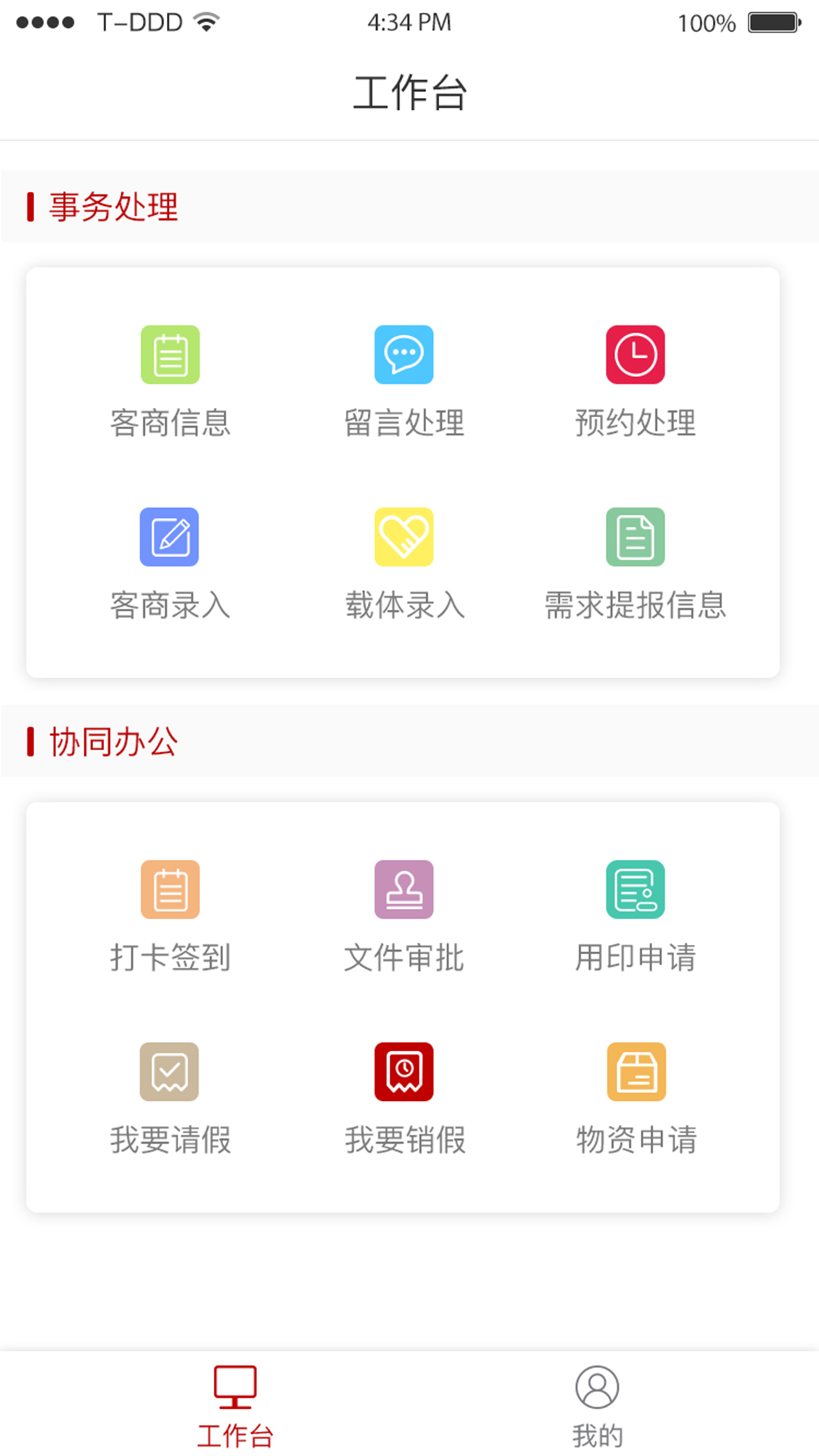 请假申请、销假办理、物资申领