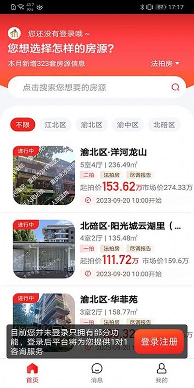 实时预览:拍卖预览、房价、拍卖活动信息等一应俱全;
