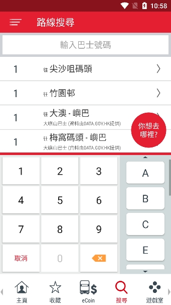 列出所有的巴士路线让你选择,亦可直接输入路线号码作搜寻。