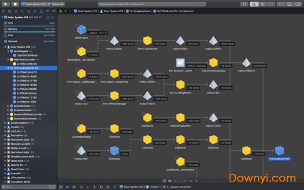 xcode6实现了此前备受开发者期待的viewdebuger。现在,调试应用ui就像单击那样简单,开发者可以轻而易举地看到为什么一个视图可能会被裁剪或隐藏,并在inspector中检查和调试约束及其他参数。当然,xcode还包含了其他新的调试工具,比如调试gauge来监控i/o用法、增强版的icloudgauge等,而debugnavigator也将显示更有用的信息,包括栈框架记录和块队列等。