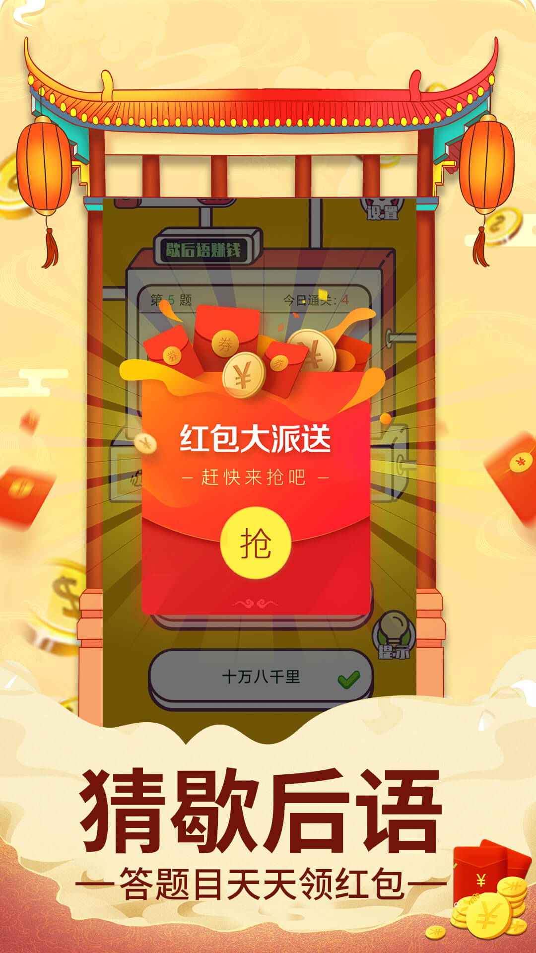 歇后语APP是一款集趣味与知识于一体的答题闯关应用,这里汇集了海量经典歇后语题目。通过接龙答题的方式,既能考验你的语言智慧,又能赢取丰厚奖励。每答对一题都能积累红包,让你在轻松娱乐中收获知识财富。