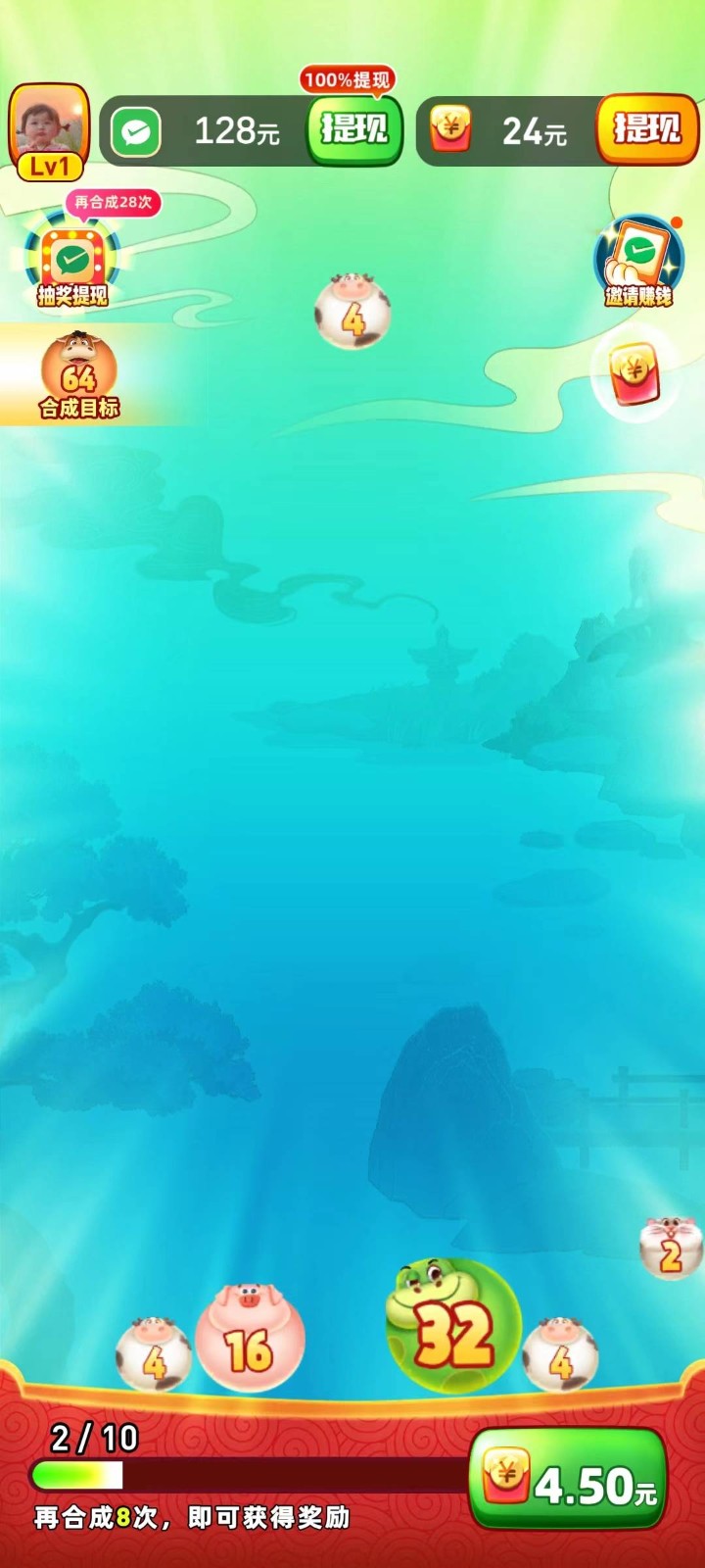 新手玩家初始奖励可能相对较少,但通过观看视频或增加合成次数,都能获得相应红包。即便是基础奖励,合成两个2048也能兑换0.3元现金。游戏将娱乐与收益完美结合,让玩家在享受游戏乐趣的同时获得额外收入。