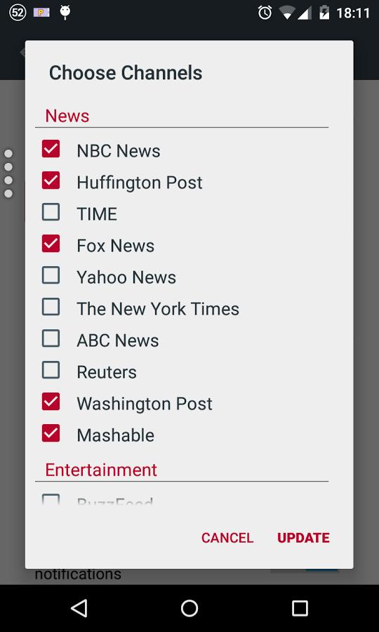 整合NBC新闻、纽约时报、美国在线新闻、TechCrunch、瘾科技、BuzzFeed、赫芬顿邮报、ESPN、石英、路透社、好莱坞记者、XDA等权威媒体资源。