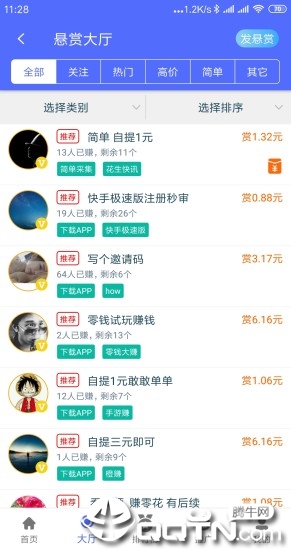 任务类型:任务类型多,一两分钟赚1元以上的赏金