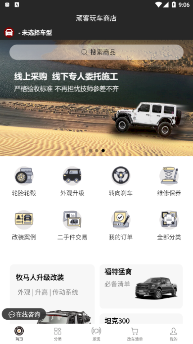 顽客玩车app为您带来汽车配件综合商城服务,可以在这里挑选不同品牌的汽车配件产品,还有专门给玩车达人们准备的DIY服务,可以打造您的专属造型风格。顽客玩车app还有专属促销优惠活动等你来参与,每日都有超值惊喜。