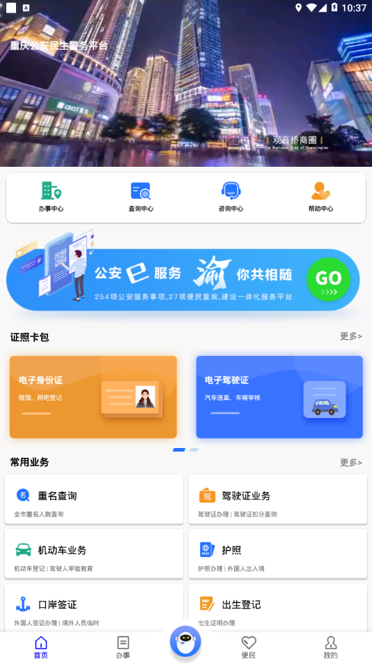 重庆民生警务App是重庆市公安局打造的线上便民服务平台,集办事服务、信息查询、业务咨询和便民功能于一体,让山城市民享受智慧警务带来的便捷生活。