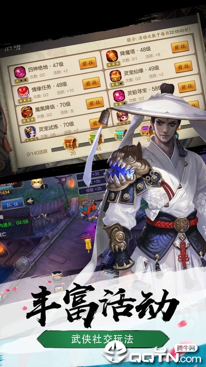 主线任务和支线任务带领着你一起探寻江湖中的各种故事和秘闻,提供给你大量经验来提升角色的等级。