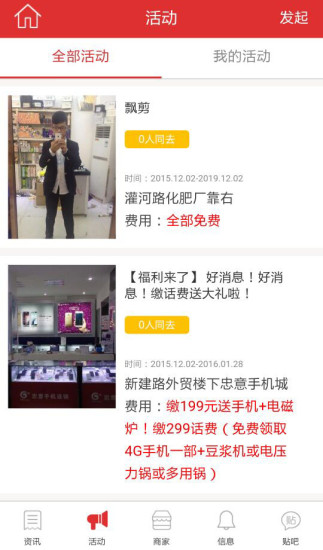 同城活动:随时在线发布同城活动信息,感兴趣的可以及时报名参加