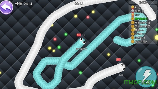 吞噬光点快速成长,目标是成为全场最长的蛇!