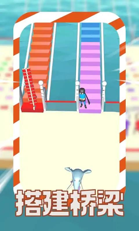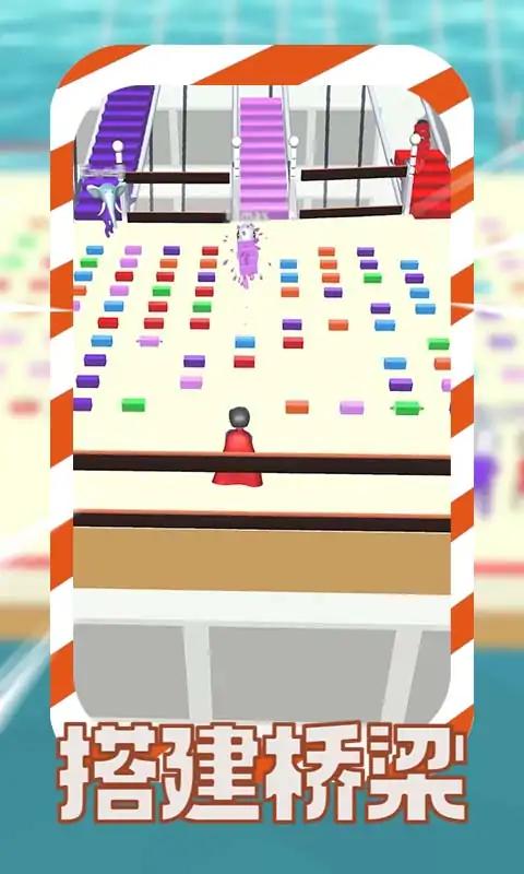 搭建桥梁是一款充满创意的休闲游戏,玩家需要收集砖块来建造独特的桥梁结构。游戏最大的亮点在于没有固定规则,你可以自由发挥想象力搭建桥梁,甚至可以通过改造对手的桥梁来干扰他们的进度,为比赛增添更多变数。