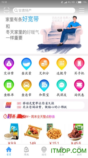 【商城服务】提供品牌手机优惠及甘肃特色商品,每周三限时抢购、周末秒杀活动,节假日更有专属特惠。