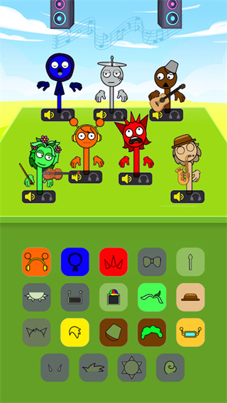 玩家可以将不同音效角色拖拽到舞台格子上,每个角色都会带来独特的节奏旋律,包括鼓点、贝斯、人声和电子音效等;