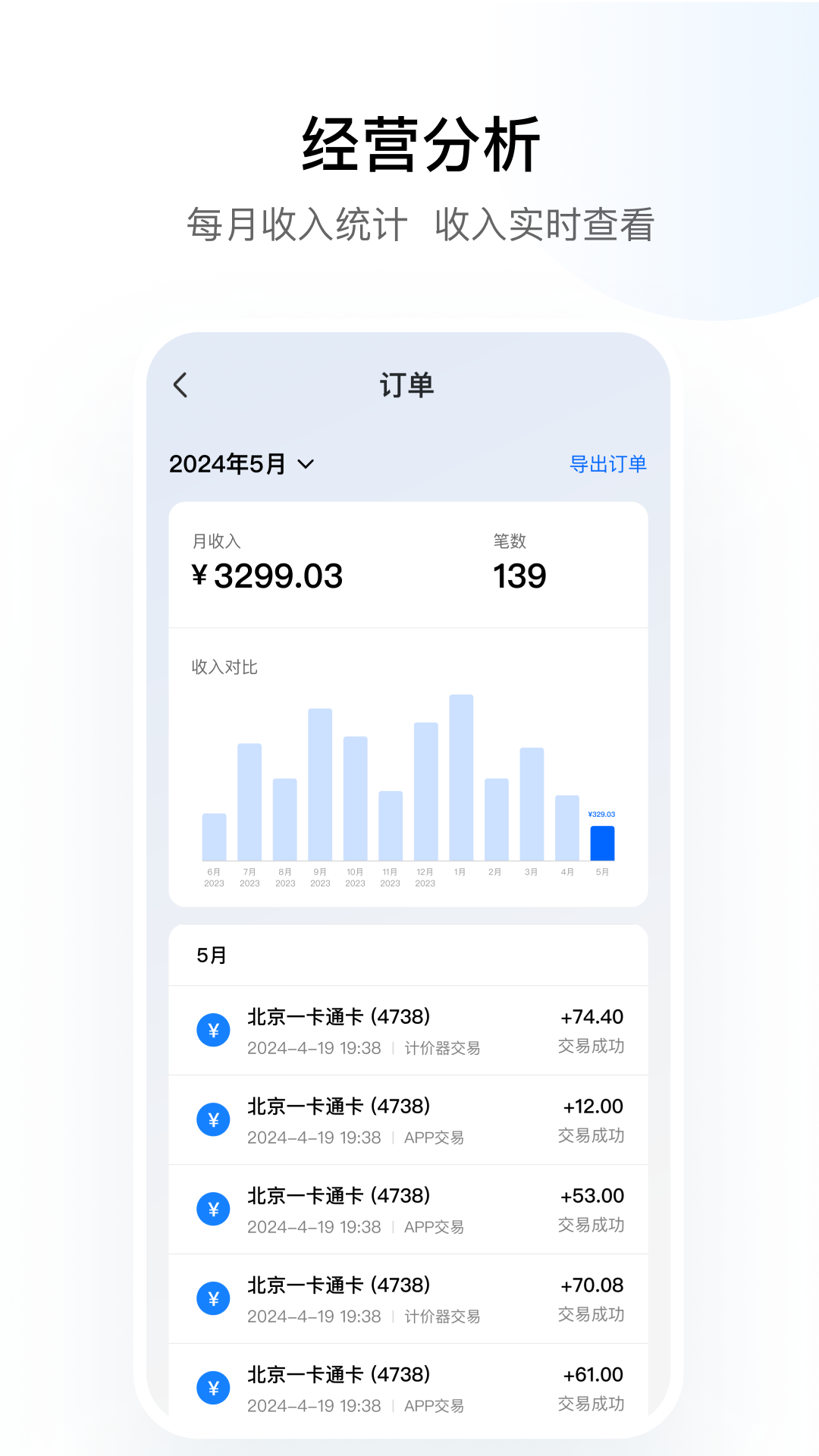 支持出租车司机及商户对交易订单进行查询及统计,可用于交易对账。