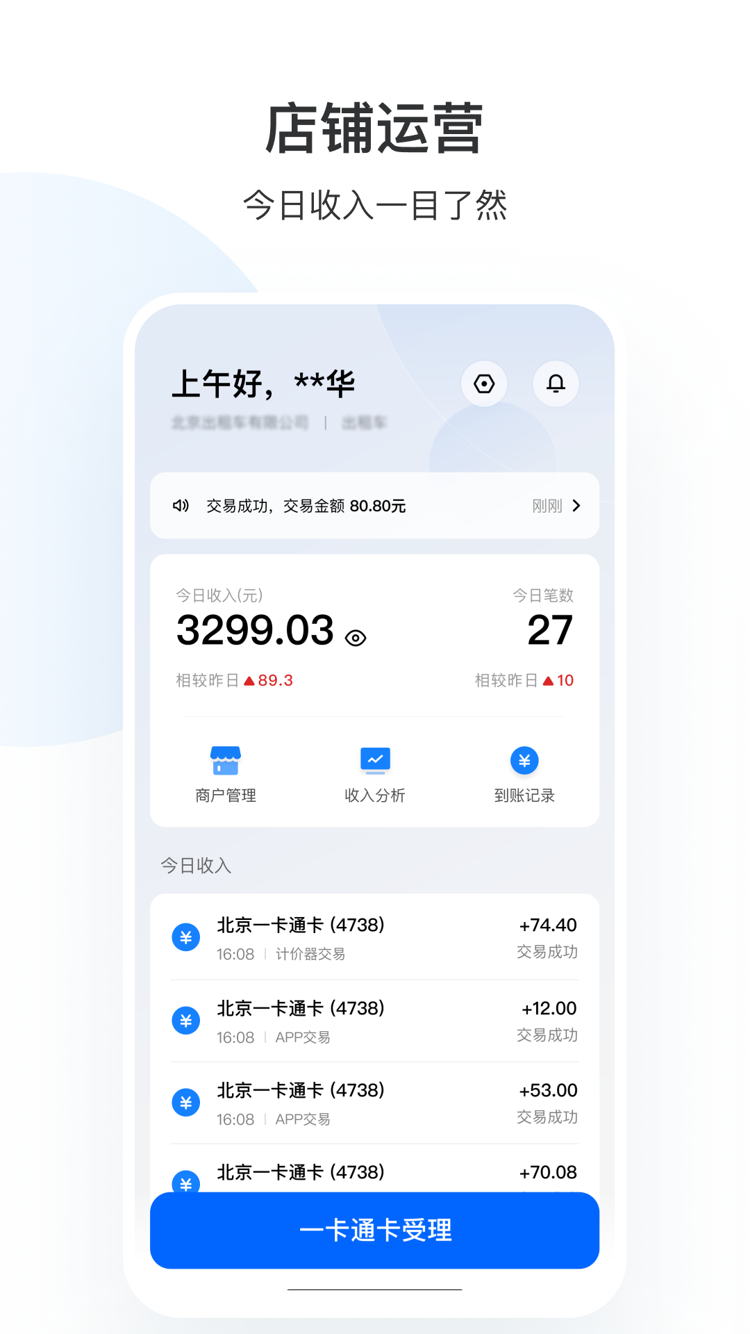 可支持出租车司机、企业、个体工商户等需要受理一卡通卡的商户入驻。