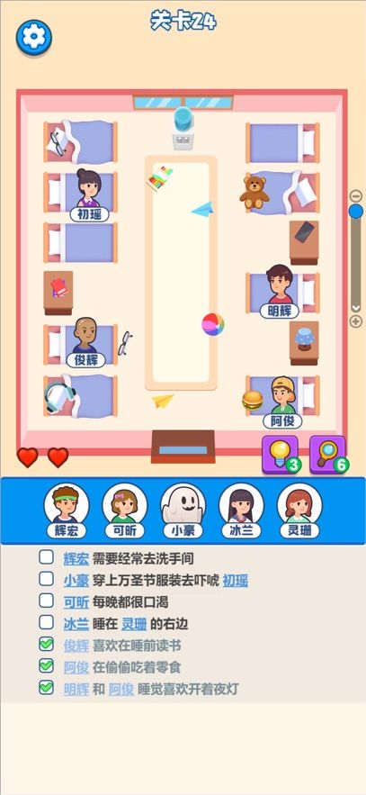思考场景中的设施、布局等对座位安排的影响,辅助推理迅速过关。