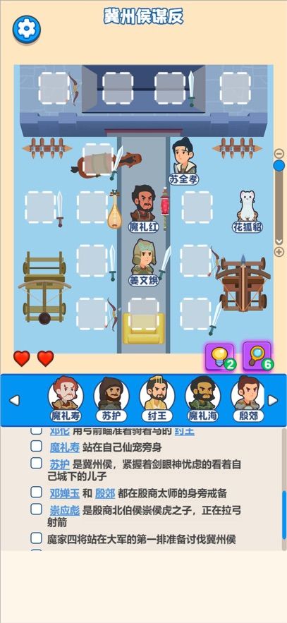 根据收集到的线索,将角色拖动放置到合适的座位上面。