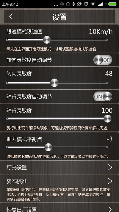 可自定义限速设置,保障行车安全;灵活调整转向灵敏度,提升操控体验;个性化设置骑行灵敏度,满足不同需求;自主设定助力平衡点,确保安全高效驾驶;支持车灯颜色自定义,操作简单便捷;具备前后车灯开关控制功能。