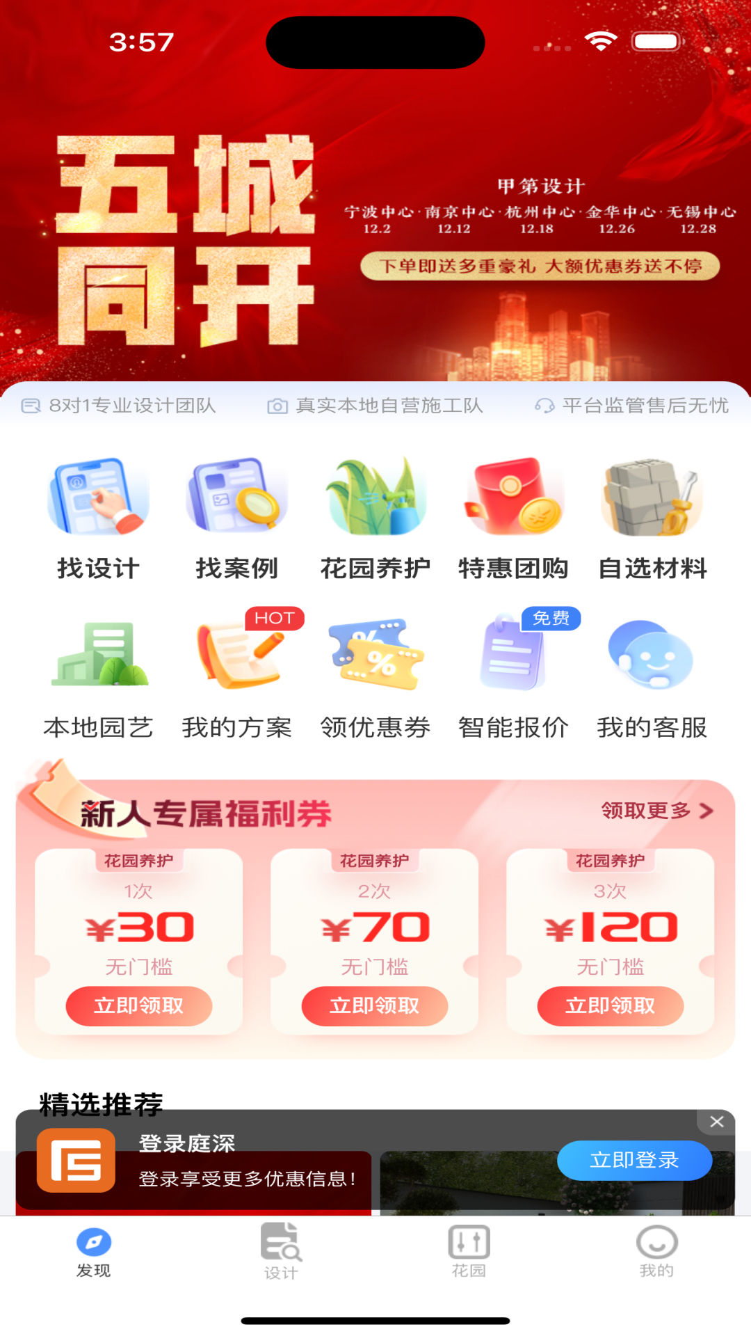 庭深为您提供专业的花园设计与维护服务,让您的庭院焕发新生。在这里,您可以自由选择经验丰富的设计师,为您量身打造理想中的花园空间。我们还准备了丰富的案例库,供您参考借鉴,从中获取灵感。同时提供多样化的材料选择,满足您对花园装饰的各种需求。
