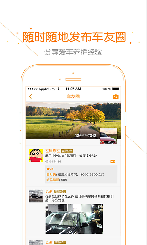 [分享经验]随时随地发布车友圈,与爱车人士一起交流养车经验;