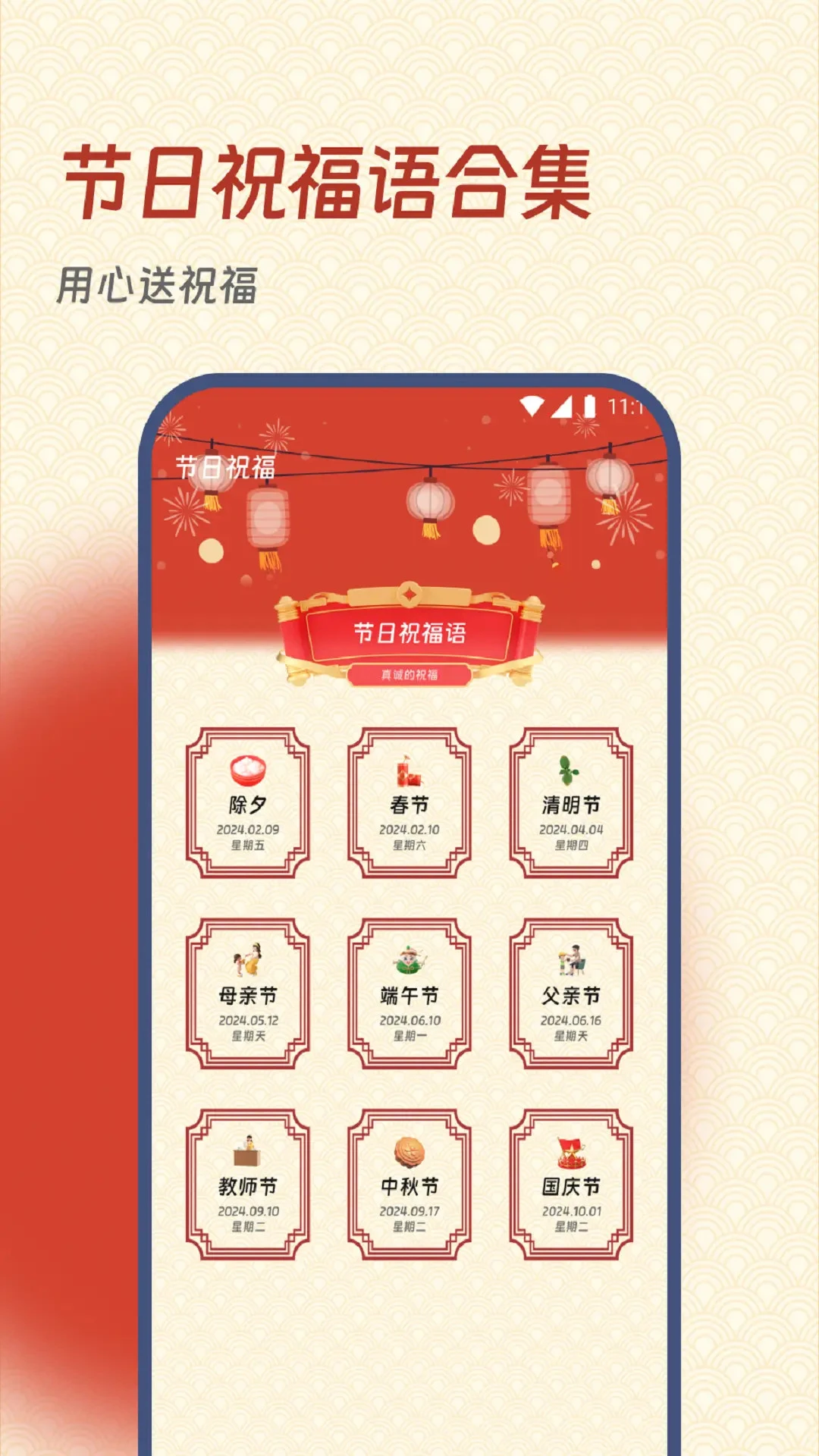 节日祝福语合集:收录各类节日祝福语,方便用户随时查找和使用。