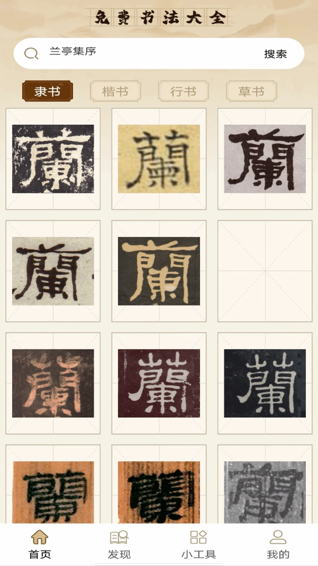 支持五大字体查询:涵盖行书、草书、隶书、篆书、楷书等书法主流字体,一键切换对比。