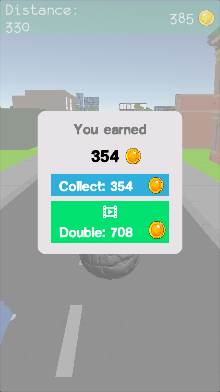 的游戏画面,纸盒样式的建筑物,被石球碰到之后则会被摧毁!