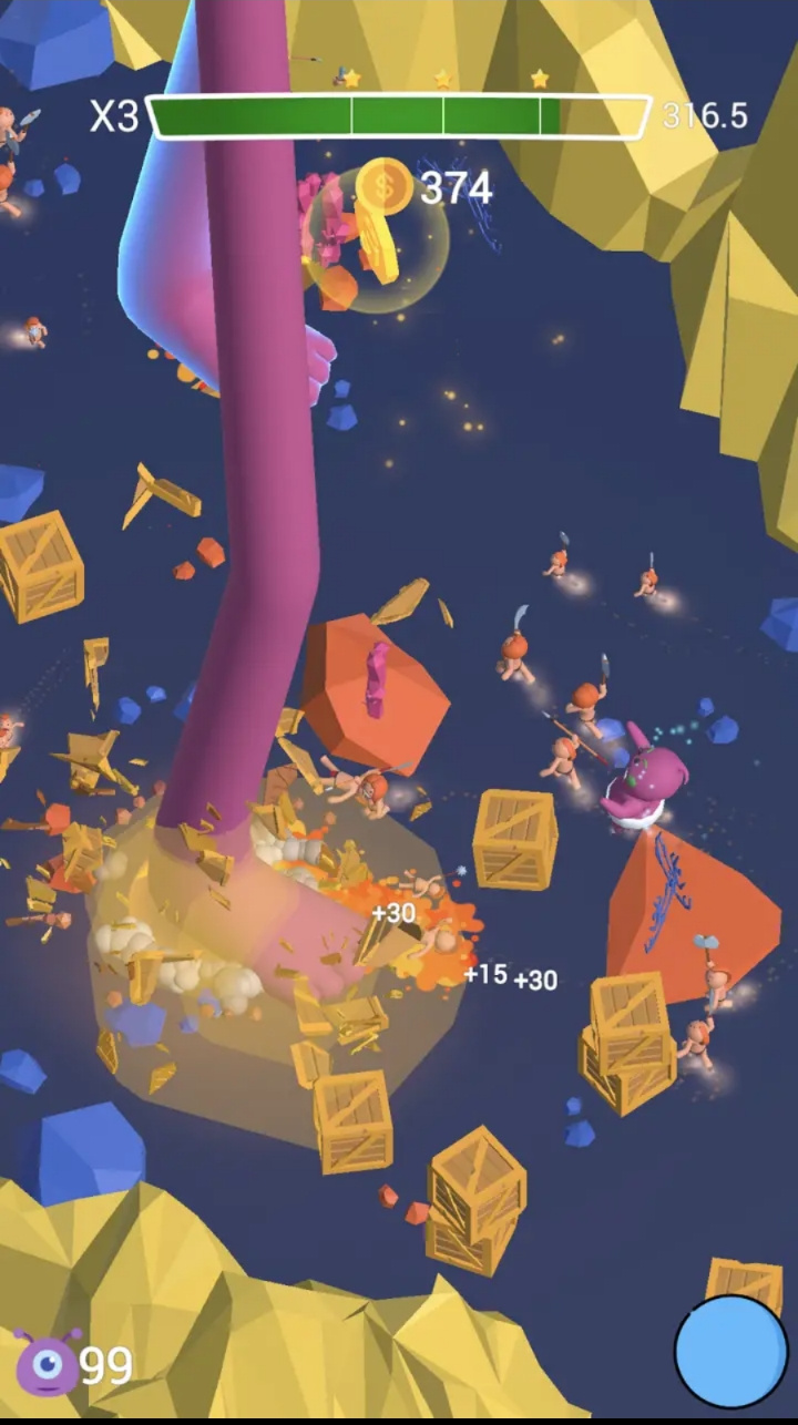 游戏中你将扮演一个令人畏惧的外星巨人,游戏营造出令人窒息的恐怖氛围。精致的3D建模搭配阴森的背景音乐,时刻让你保持高度紧张。特别是那个红色巨人的形象设计,给人带来极强的压迫感,你必须想尽办法摆脱它的追击!