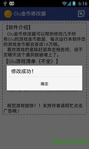 glu手机版是一款专为手游玩家设计的金币修改工具,能够帮助用户轻松获取大量游戏货币。通过这款应用,玩家可以自由购买各类道具装备,大幅提升游戏体验的畅快感。目前该工具已适配多款热门手游,欢迎有需要的玩家下载使用。