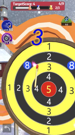游戏对玩家的反应能力和投掷技巧都有一定要求,想要获得高分需要不断练习。精准命中的成就感让人欲罢不能,值得推荐给所有喜欢休闲游戏的玩家。