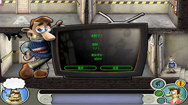 接着在望远镜上涂抹胶水,邻居使用时就会被牢牢粘住。趁其不备潜入客厅,将电视天线扭成一团,再悄悄把暖水袋放在沙发上。当邻居接连遭遇这些"意外",整蛊大计就圆满成功了。每次成功整蛊都会获得评价,顺利通关即可解锁新关卡。