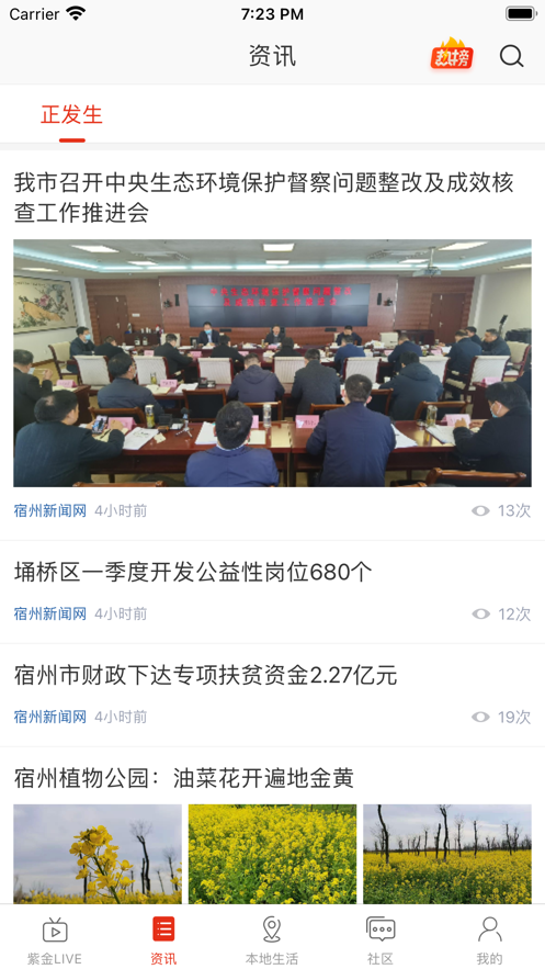 "在宿州"APP整合了新闻资讯、紫金FM广播、电视直播、社区论坛、本地团购、电商服务等多元化功能,全方位满足宿州市民的日常生活需求。平台以"时尚、实用、实惠"为服务宗旨,既为市民提供优质的生活指南,也为本地企业搭建了高效的数字化运营平台。