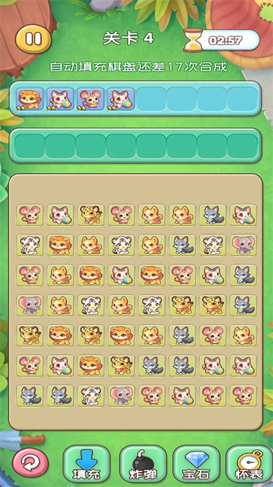 游戏巧妙融合了三消与斗兽棋的核心玩法,通过合成相同棋子带来爽快的消除体验;