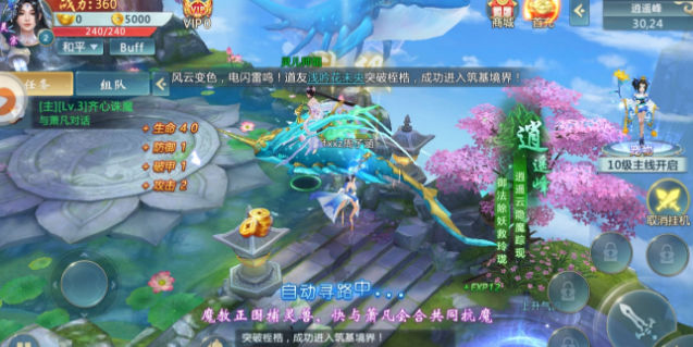 云龙击:释放飞剑攻击目标及周围敌人,法力充足时可连续施放。