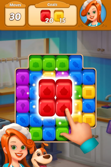 关卡中布满了各式各样的美味甜点,从巧克力到马卡龙,从慕斯蛋糕到水果塔。玩家在消除方块的同时,还要注意收集这些诱人的甜点来完成关卡任务。