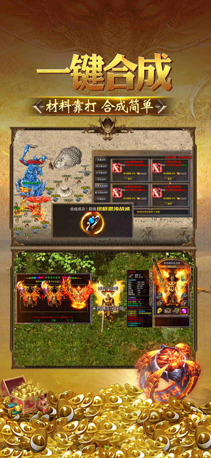 丰富的BOSS挑战玩法,击杀可获得极品装备和道具;每日福利活动不断,免费元宝轻松获取;完善的交易系统确保装备流通无忧;休闲玩法包括押送囚徒、篝火经验、天降财神等趣味内容。
