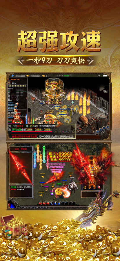 全自由PK设定,除安全区外均可随时开战,完美还原经典传奇体验;核心玩法包括神主争夺和沙城争霸;多样化的PVE副本满足不同玩家需求;新手上线即送满V特权,28888元宝和1888万金币;丰富的特色玩法包括冰火战场、神魔霸主和热血攻城战。