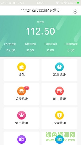 收益管理、运营商信息管理、关系统计、钱包管理、会员管理、提现管理、投诉管理、帐号安全管理、数据统计、商户管理、公告通知、邀请好友、帮助中心、问题反馈等功能。