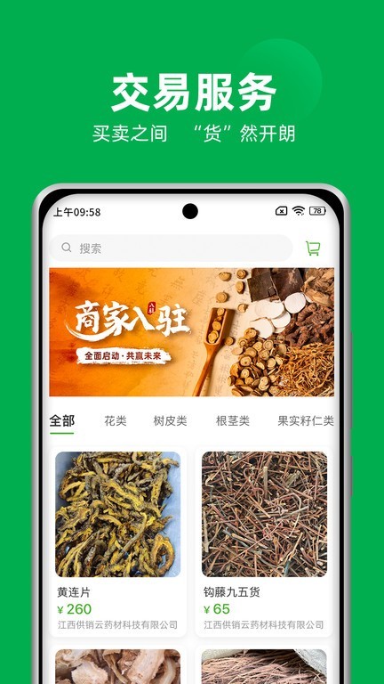 该软件是中药材产业服务数字化云平台,为中药材产业链上下游企业提供药材信息、中药材交易、代采代销、供应链金融、中药材溯源、财税合规、技术开发等一站式产业服务,建立具有全国影响力的中药材产业数字化服务体系,助推数字经济与实体经济深度融合