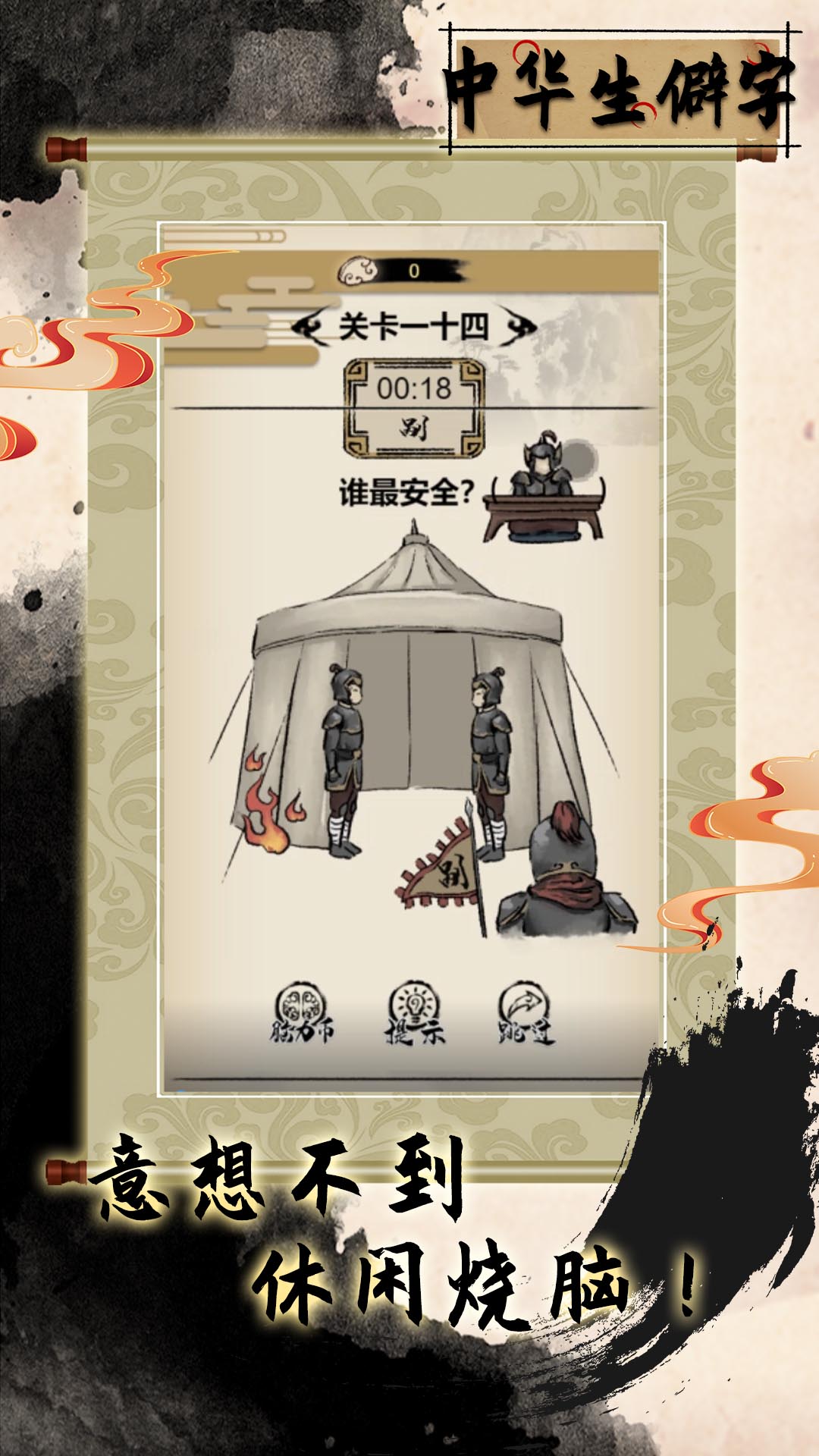 中华生僻字是以中国传统为主题,游戏结合了中国春夏秋冬等元素,以看图识字、脑筋急转弯、成语典故为载体来表现内容。